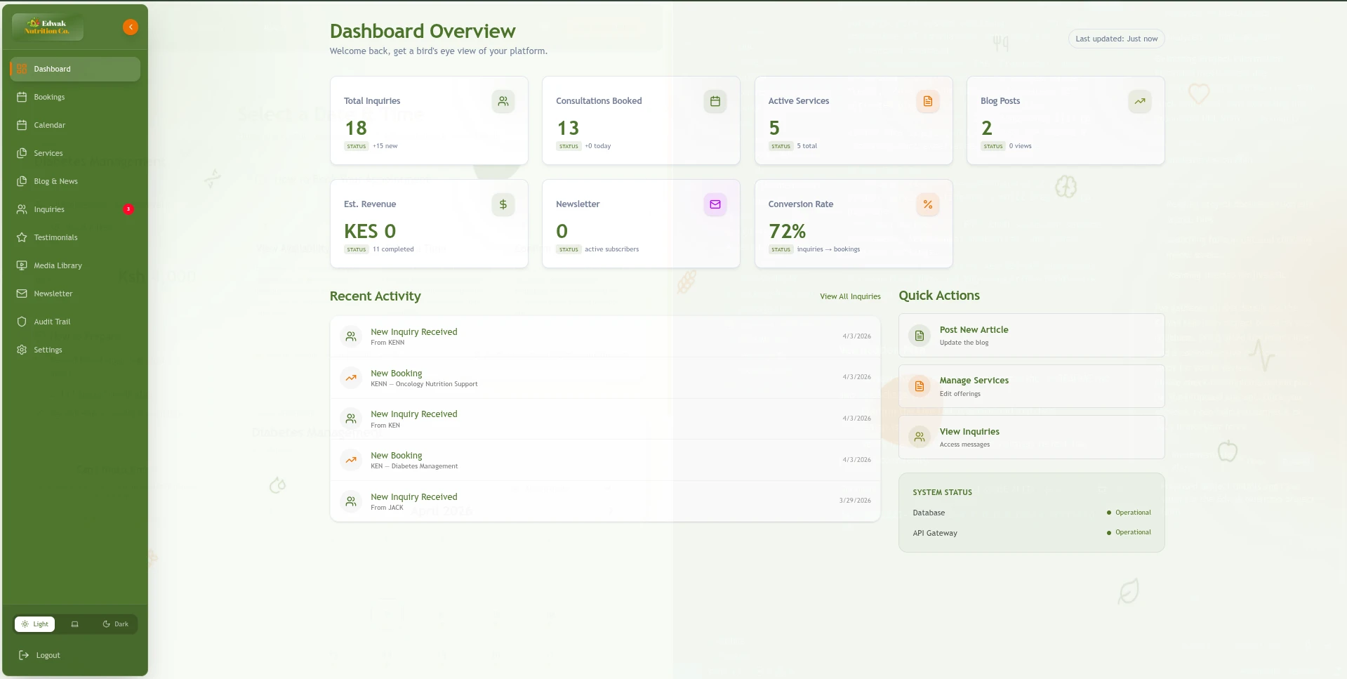 Edwak Nutrition is a premium, high-performance digital ecosystem engineered for modern clinical nutrition consultancies. The platform bifurcates into a sleek patient-facing interface and a robust administrative core, leveraging advanced web technologies to deliver unparalleled speed, security, and intelligence.